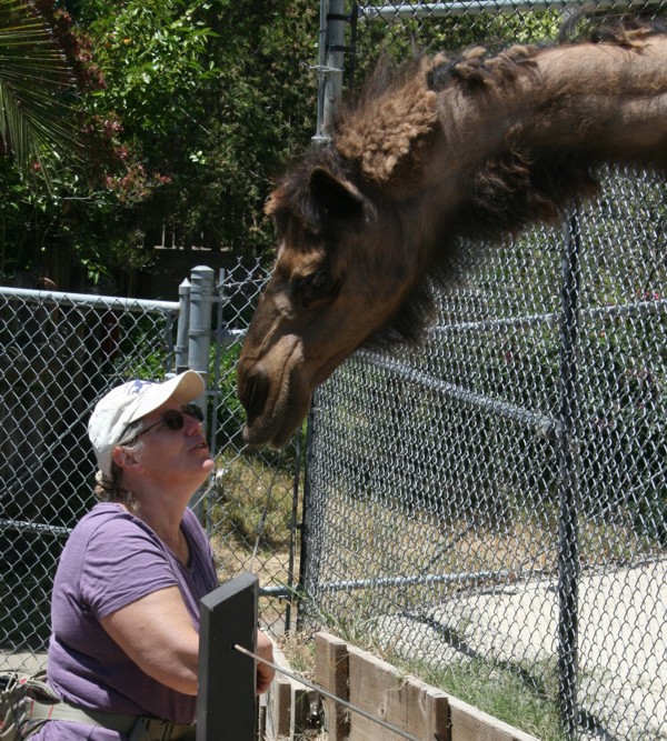 So I went over to the fence and initiated a conversation. I did this by keeping my hands down, sticking my neck out like another camel, and moaning softly. (Chewbacca from Star Wars is a recording of camel noises, specifically a camel at Marine world trained by my friend, the late Paul Barkman.)